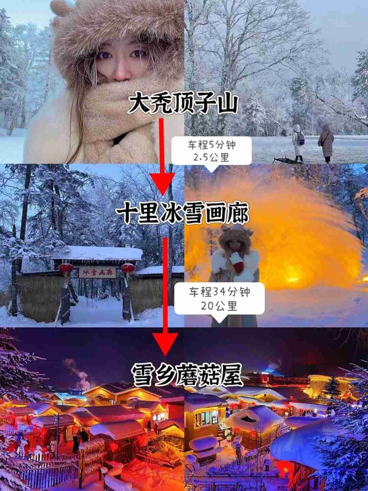 Day3❤ :雪乡日出—雪乡大石碑—发圈必备95℃泼水成冰—雪乡童话邮局—AAAA级亚布力滑雪旅游度假区(2025年冬奥会哈尔滨主办地)—室外寒地温泉
